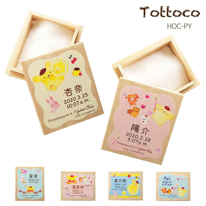 おおでゆかこ × ポムポムプリン へその緒ケース 名入れ / 漢字名入れ / 綿入り / 乾燥剤付き 桐箱 スウィートレモン おかしのおうち パンケーキレシピ へその緒入れ 臍帯箱 出産祝い 誕生記念 サンリオ
