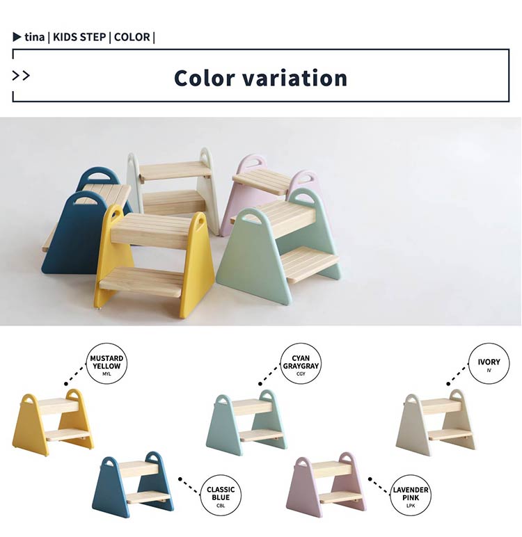 手洗い・うがいの習慣を楽しくするキッズ用ステップ台 北欧テイストのカラーバリエーション お部屋に置いてもインテリアになじむおしゃれなデザイン 持ちやすいグリップ穴付き