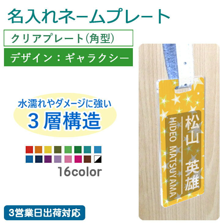 【3営業日出荷対応 名入れネームプレート】クリアプレート(角型)/ギャラクシー 本革ベルト使用 ギフトラッピング無料 メール便送料無料 ゴルフ ゴルフバッグ 名札 コンペ 記念品 賞品 キャディバッグ キャリーバッグ スーツケース 父の日 誕生日 本革ベルト
