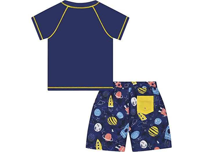 ■備考(取寄) ツーピース ラッシュガード スイム セット (トドラー/リトル キッズ) ANDY & EVAN KIDS Two-Piece Rashguard Swim Set (Toddler/Little Kids) Navy Spaceキッズ 水着 パンツ ハーフパンツ ショートパンツ スイム ブランド カジュアル 大きいサイズ ビックサイズ zp-9839832