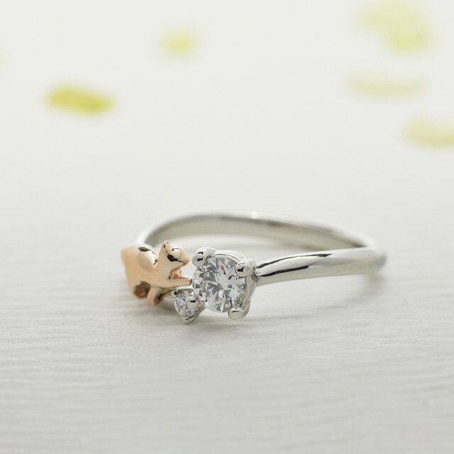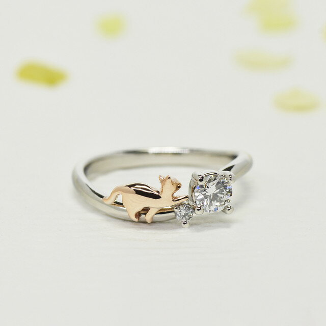 エンゲージring】 愛らしい猫が幸運(ダイヤモンド)を捕えようとしている様子をデザインした?猫リング”です。